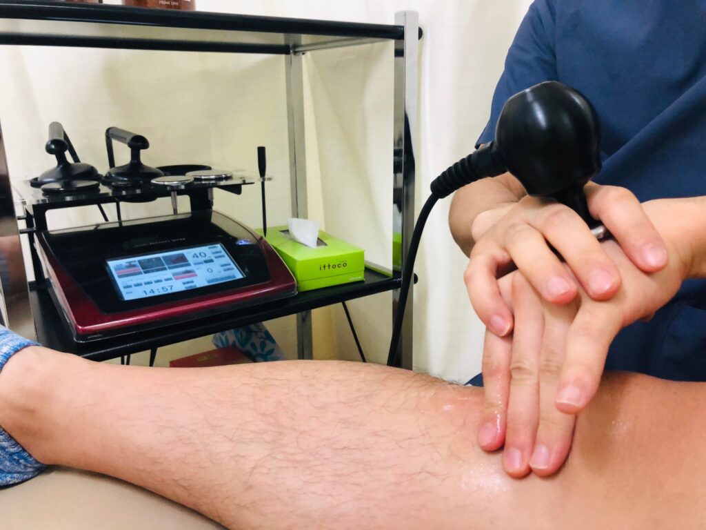 強い振動を痛む所に当て、あえて組織を少し傷つけることで回復させる治療法です。知覚神経を麻痺させるため、だんだんと痛みが引いていくのを実感できます。